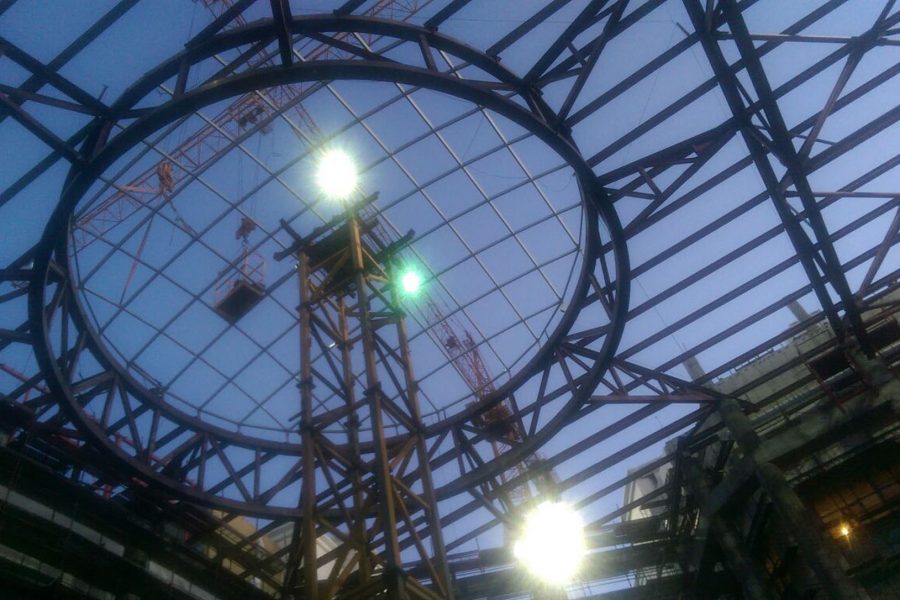 Sembol A.Ş. Nazarbayev Üniversitesi – 2014 Atrium ana çatısının montajı. Toplam 250 ton.
